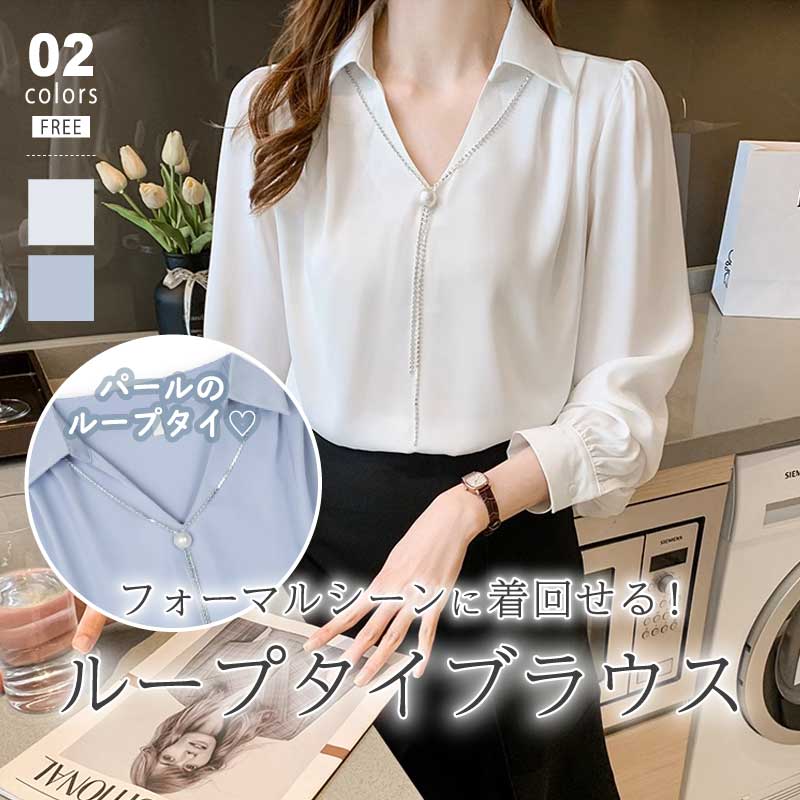 【一番人気】ラリエット風ネックレス付き パールブラウス 入学 入園 卒業 卒園レディースファッション トップス30%までに制限